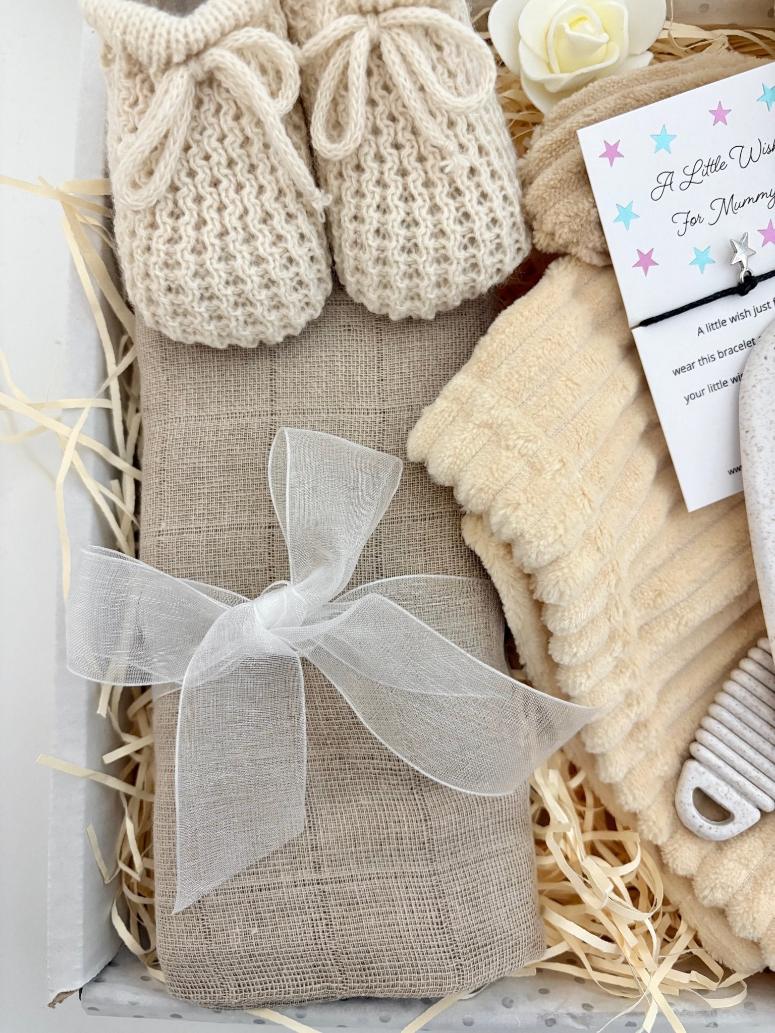 This gift comes in a white kraft box with shredded paper, tissue paper and finished off with a beautiful ribbon. It is then sent out in a pretty postal bag.